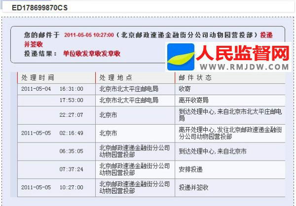 本图:人民监督网发往卫生部的采访函签收凭证