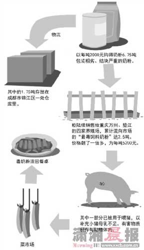 三聚氰胺奶粉销往饲养场 毒奶粉是否将回流餐桌