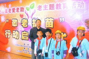 丁廷臣陪同小记者参加“敬老护苗”行动启动仪式。