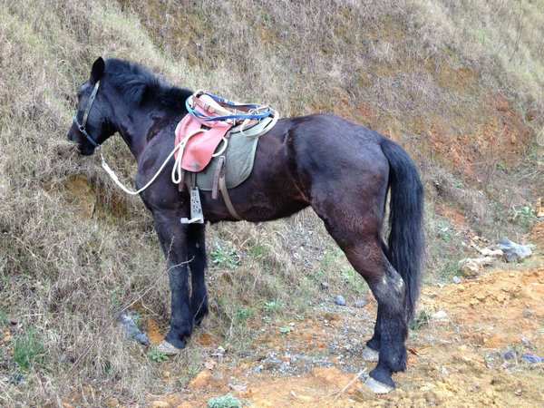 2015年3月12日,我到达贵州省桐梓县城,住进了郊区的一个旅店。这次,马拴在了离宾馆不远的地方。可能是因为我没有拴好马缰绳,马自己跑了。