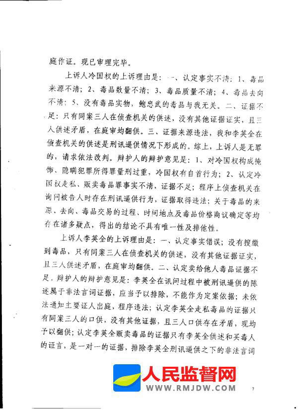 • ››杨俊泽律师就冷国权贩毒...