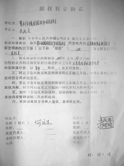 另外,值得注意的是,在涉及此次股权变动的多份股权转让协议上,转让方与受让方约定,“受让方应支付给转让方的款额按股权自转让之日以货币形式一次支付完结。”但据记者调查,朱纪美等人并未自掏腰包支付受让股份款额,而是采取从新华村村民委员会借款的方式支付受让股份欠款。