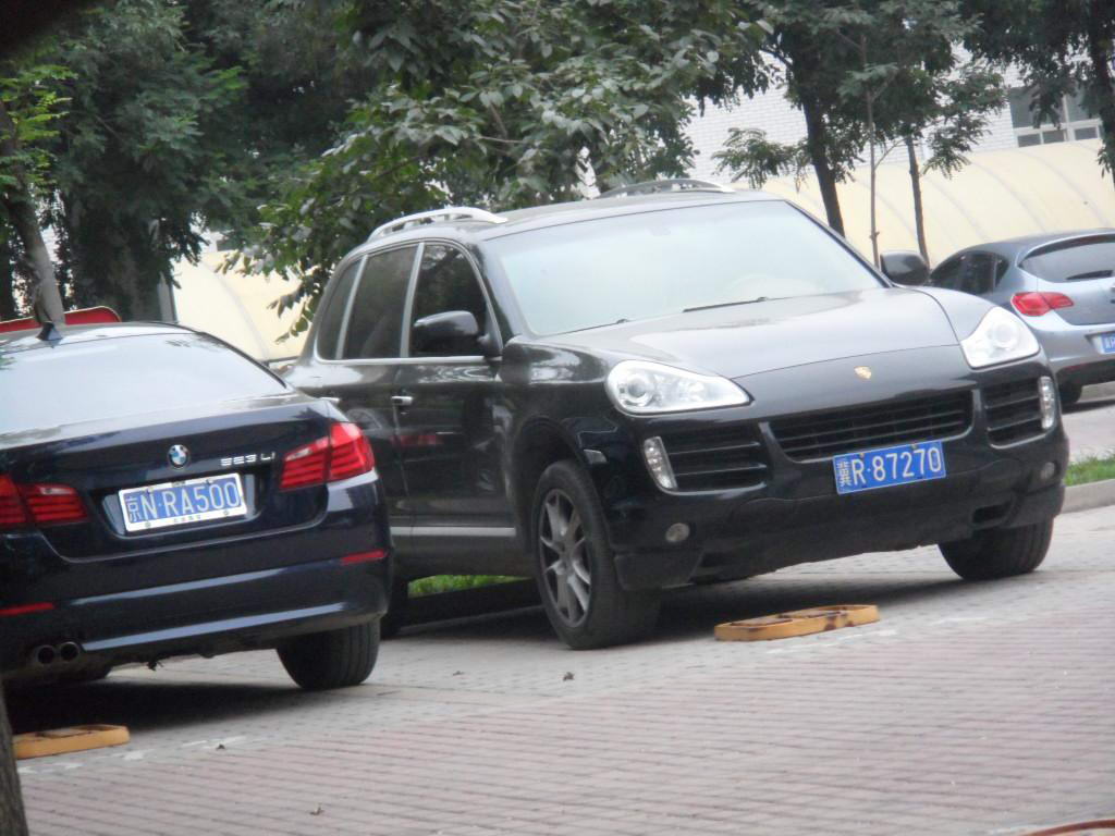 本图:刘广富儿子刘超驾驶保时捷卡宴、儿媳驾驶宝马