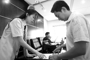 昨日,法院宣判后,宋某在判决书上签字。本报记者 王贵彬 摄