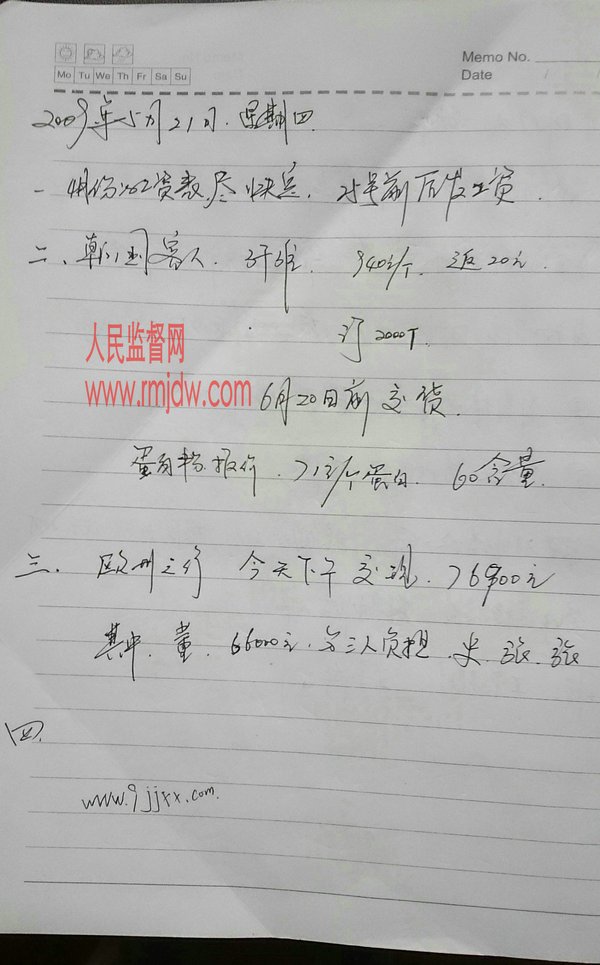 今年45岁的张雷达有写日记的习惯,上面就是他的日记内容。张雷达系山东照东方纸业集团旗下山东德州福源生物淀粉有限公司总经理。在他的近20本日记中,人民监督网记者初步统计发现,里