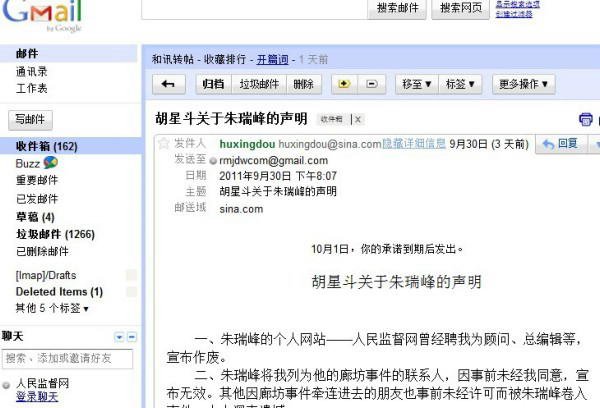 朱瑞峰关于胡星斗声明的回应_人民监督网