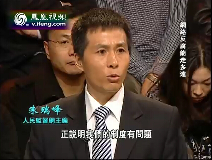 本图:中国著名调查记者朱瑞峰参加<凤凰卫视>一虎一席谈节目截图