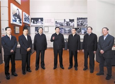 2012年11月29日,习近平和新一届中央政治局常委们集体参观国家博物馆的《复兴之路》展览。展览讲述中国人在苦难中,为民族复兴而进行的抗争和探索。