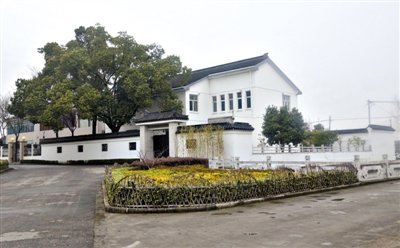 这是一座白墙黑瓦的二层小楼,黑色雕花铁门,门楼檐角翘起,后院绿树婆娑。院里最特别的是一棵直径70厘米左右的香樟树,树顶几乎与屋顶齐高。院子旁向北挖开一条河,与孙家坝河流相连,一直流到宛山荡。