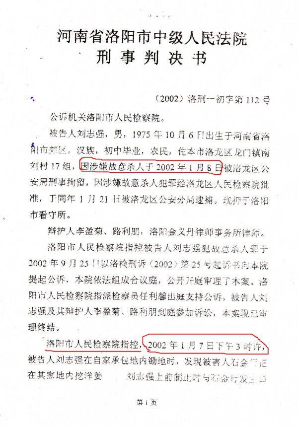 洛阳中级法院审判长陶向阳、审判员郭燕燕、代书记员腾建龙,说什么严格、认真。他们竟将发案时间搞错了9天。以他们法院的认定,即:我儿刘志强被刑事拘留后9天才将人打死。此判决创下中国杀人犯之最。